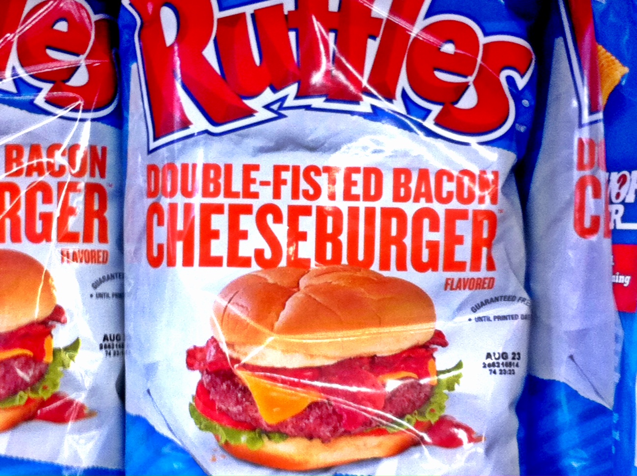 Ruffles Double-Fisted Cheeseburger Flavored Potato Chips, everybody. Hooray for the red, white and blue. Happy Birthday America, you crazy son of a bitch. I wouldn’t live anywhere else.