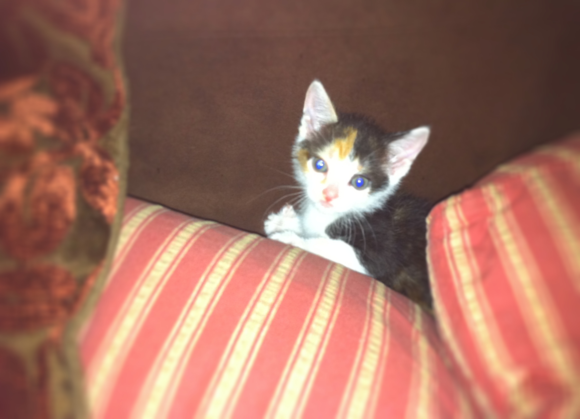 This is a view of our new cat. She’s about 5 weeks old and she’s a girl. She doesn’t have a name yet because we can’t decide what to name her. But just look at that face and tell me you don’t want to squeeze her. I mean, come on.