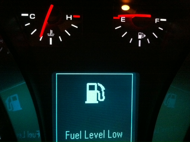 I drove into town and saw a gas station up ahead on the left. It didn’t look like there was any line to get in from what I could see.  Wrong.  Of course, they had the left turn blocked off and there was a massive line coming from the other side of the street into the station.  Fuuuuuuuck.  I went to the end of the line, turned around and queued up.  I looked at the gas gauge.  It was now on “E” and maybe even slightly past it, if that’s possible.  The dashboard monitor wouldn’t even give me the amount of miles I had left in the tank.  I made my second command decision; I was going to live or die on this line.