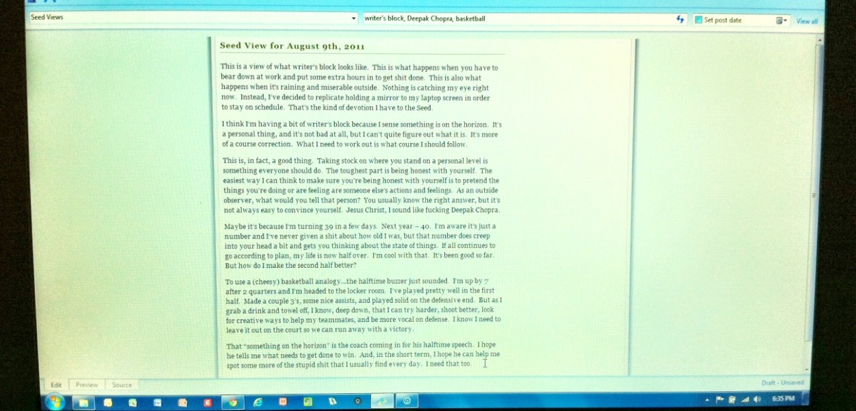 This is a view of what writer’s block looks like. This is what happens when you have to bear down at work and put some extra hours in to get shit done. This is also what happens when it’s raining and miserable outside. Nothing is catching my eye […]